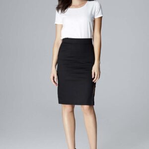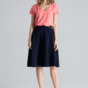 granatowa rozkloszowana spódnica midi z kieszeniami