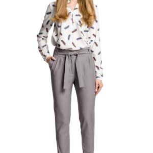 szare eleganckie spodnie typu chino z wiązanym paskiem