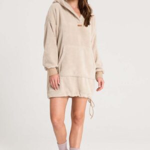 przedłużona pluszowa bluza z kapturem – czppuccino