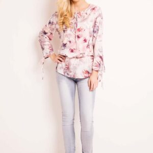 bluzka w ciemne kwiaty z wiązaniem przy dekolcie