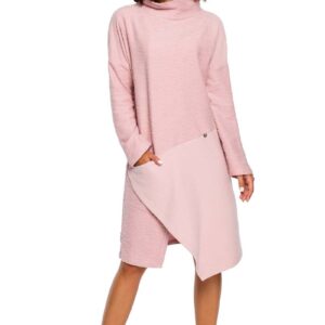 pudrowa asymetryczna sukienka z golfem