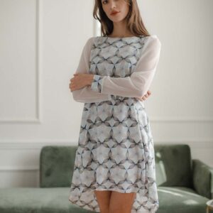 rozkloszowana sukienka z siateczkowym rękawem – wzór 114