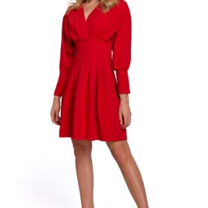 czerwona kopertowa sukienka z kimonowym rękawem