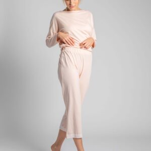 spodnie od piżamy długości 7/8 z koronką – cappuccino