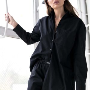 czarna koszulowa bluzka z falbankowym rękawem