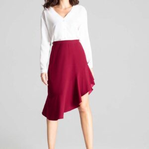 bordowa asymetryczna spódnica z falbanką