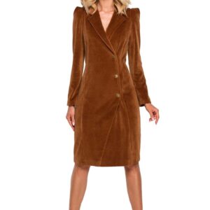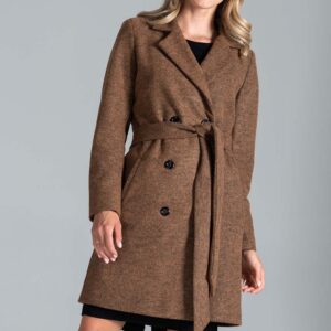 krótki dwurzędowy płaszcz z paskiem – brązowy