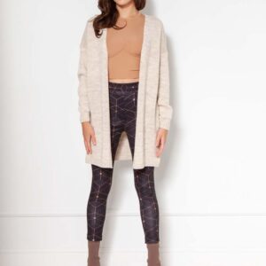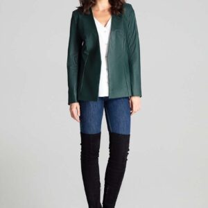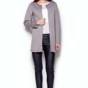 szara dłuższa kurtka bez zapięcia z okrągłym dekoltem
