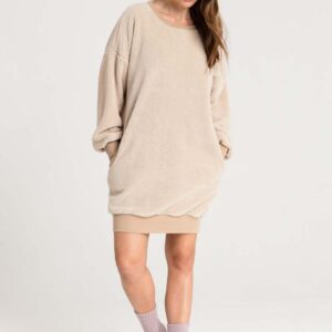 pluszowa tunika z dekoltem na plecach – cappuccino