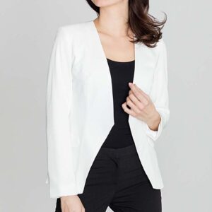 elegancki ecru żakiet w głębokie „v” bez zapięcia