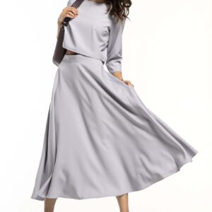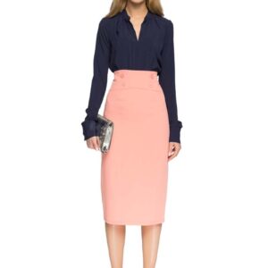 ołówkowa spódnica midi z wysokim stanem – łososiowa