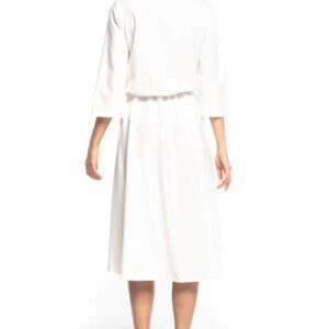 ecru swobodna sukienka na lato z zaokrąglonymi dołem