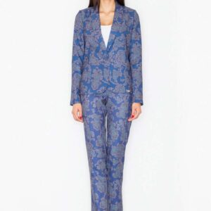 niebieska klasyczna ołówkowa sukienka midi z ozdobnym dekoltem