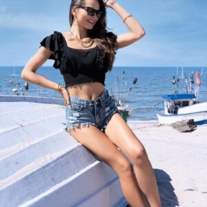 efektowny kombinezon z krótkimi nogawkami – czarny