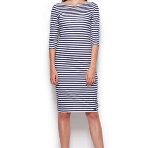 pasiasta midi sukienka z rękawem do łokcia – granatowy