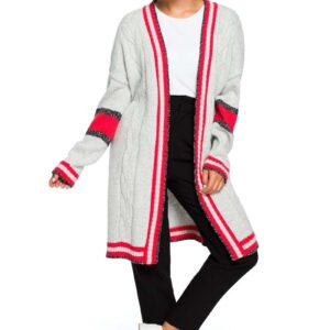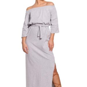 szara dzianinowa długa sukienka z szerokim dekoltem