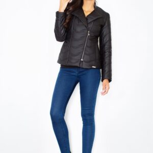 czarna krótka pikowana kurtka z asymetrycznym suwakiem