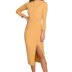 beżowa casualowa sukienka z imitacji zamszu z metalowymi kółkami