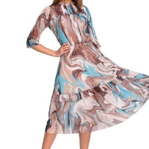 bordowa klasyczna rozkloszowana sukienka za kolano z dekoltem v