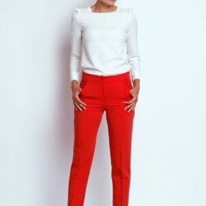 czerwone eleganckie spodnie cygaretki