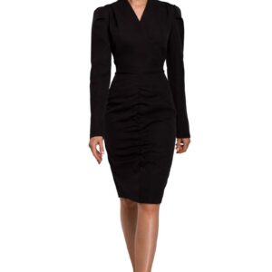 czarna ołówkowa sukienka z marszczeniem na spódnicy