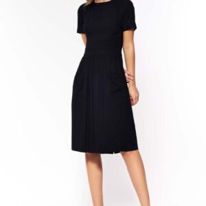 granatowa sukienka z dołem w kontrafałdy