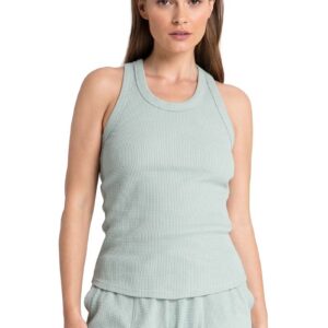 koszulka typu bokserka z dzianiny wafelek – szałwia