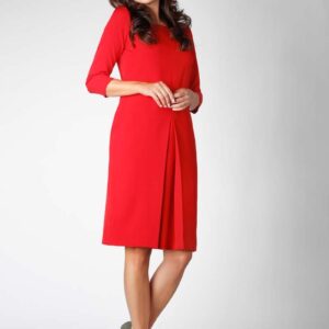czerwona elegancka prosta sukienka koktajlowa z kontrafałdą