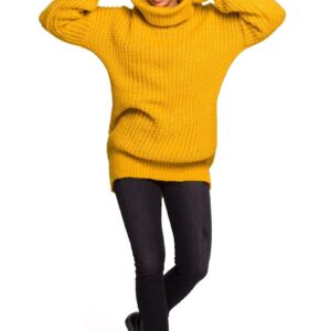 miodowy luźny sweter z półgolfem