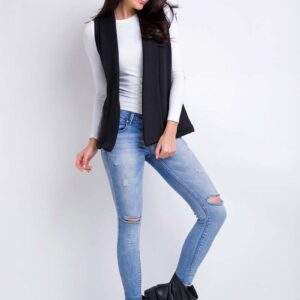 czarna kamizelka dzianinowa bez zapięcia z klapami