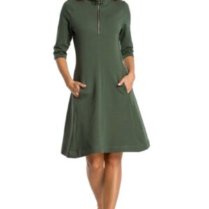 khaki sukienka z półgolfem na suwak