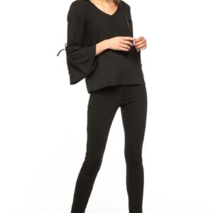 czarna dopasowana sukienka z długim bufiastym rękawem