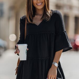 muślinowa sukienka o rozkloszowanym kroju – czarna