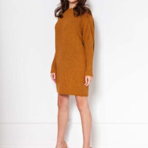 swetrowa tunika z dekoltem w łódkę – musztardowa