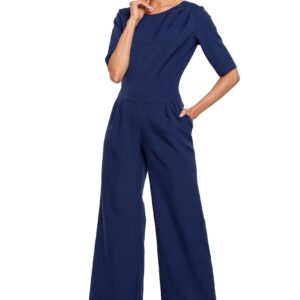 intrygujący kombinezon z prostymi nogawkami – granatowy