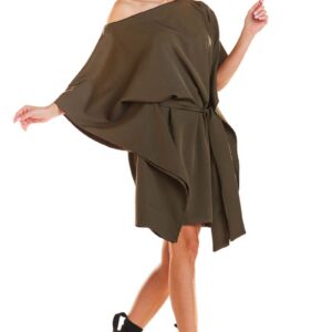 khaki kimonowa sukienka z paskiem