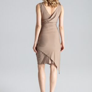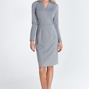 prosta jasnoszara dzianinowa sukienka z ozdobnym suwakiem