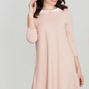 różowa zwiewna koktajlowa sukienka z dekoltem halter na stójce
