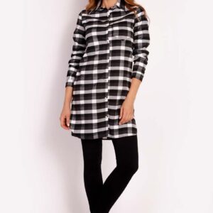 biało-czarna tunika koszulowa w kratę na zatrzaski