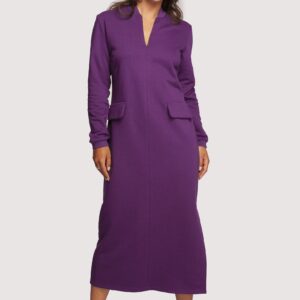 długa dresowa sukienka ze stójką – purpurowa