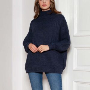 granatowa asymetryczna tunika z wywijanym kołnierzem