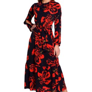długa sukienka w kwiaty z rozcięciem na rękawach – model 1