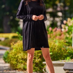 welurowa dopasowana mini sukienka ze stójką – granatowa