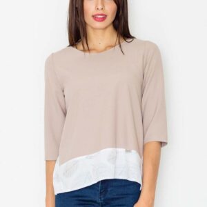 beżowa bluzka z wzorzystym dołem z rękawem 1/2