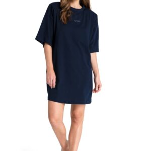 wzorzysta mini sukienka z falbankami – granatowa w kwiaty
