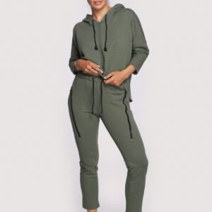 dresowe spodnie z ozdobnymi suwakami – khaki