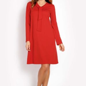 czerwona codzienna zbluzowana sukienka z dekoltem na plecach