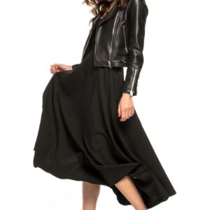 czarna rozkloszowana midi spódnica z metalowym zamkiem