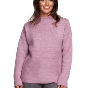 milutki sweter z zabudowanym dekoltem – pudrowy