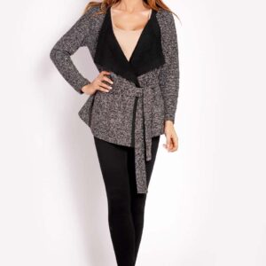 krótki zapinany kardigan z bufiastym rękawem – grafitowy